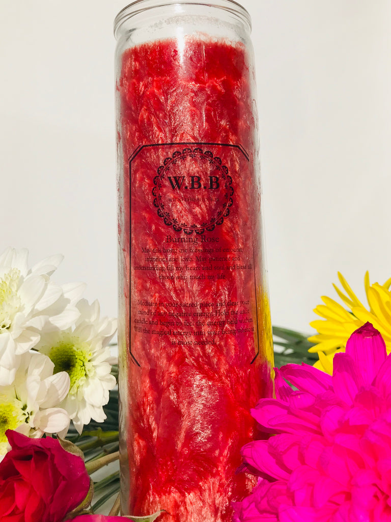 This 12oz spiritual prayer candle is made with a beautiful Palm wax that gives a glossy glow finish. This clean burning wax and cotton wick burns approximately 50-69 hours. Set your prayer intentions with this soft smell of rose petals.
